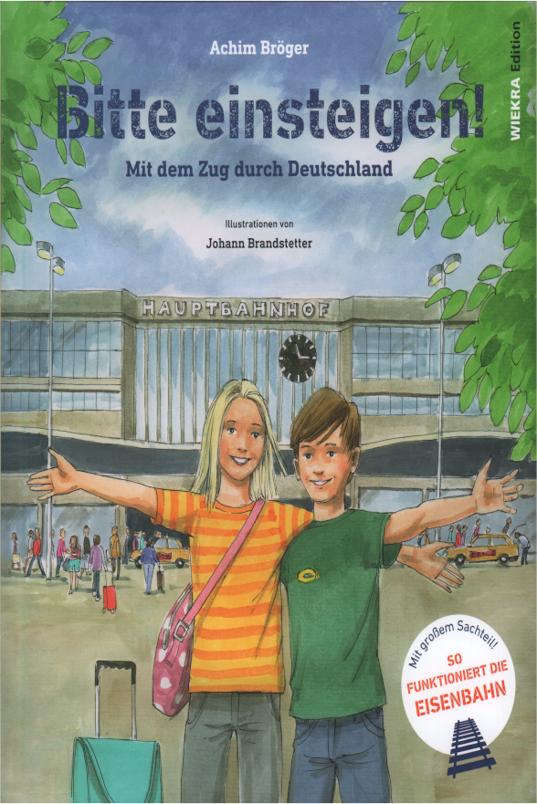 Bitte einsteigen! WIEKRA Edition Große Ferien! Lucy und Luca reisen mit ihren Eltern durch Deutschland. Mit dem Zug geht es von ihrem Zuhause in der Nähe von München auf die Nordseeinsel Borkum. Sie erkunden Bahnhöfe, lernen Leute kennen, erleben ein Abenteuer und schließen neue Freundschaften – auch mit einem Hund. Der zweite Teil ist ein Sachbuch über die Welt der Eisenbahn. Hier erfährt man zum Beispiel, seit wann es Schienen, Züge und Lokomotiven gibt. Außerdem wird in Bildern und Texten die Geschichte der Eisenbahn erzählt, wie sie funktioniert und welche Berufe es bei der Bahn gibt. Empfohlen von der ‚Stiftung lesen‘ 2024 |